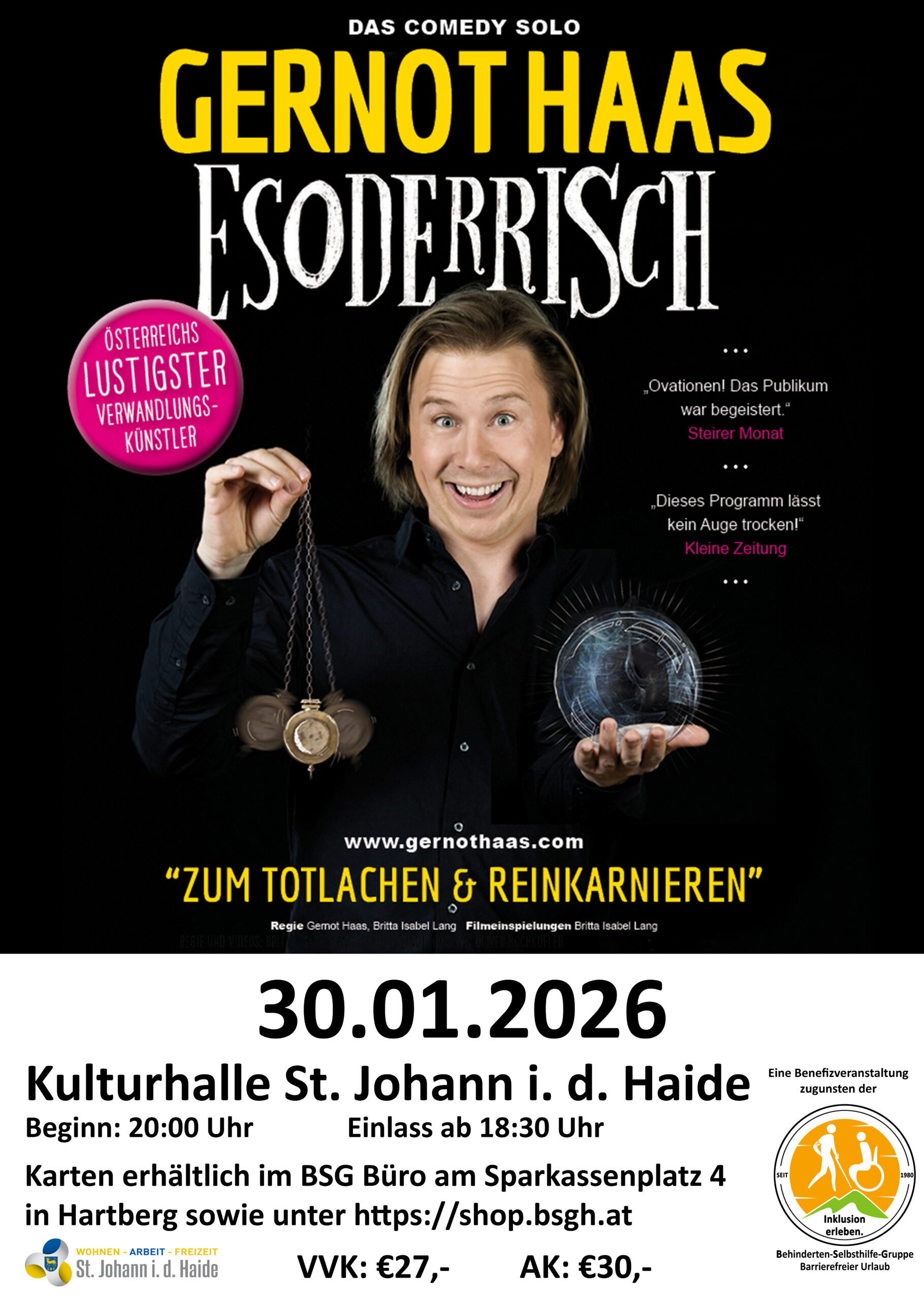 Sie suchen ein passendes Geburtstagsgeschenk oder Weihnachtsgeschenk? – Dann haben wir hier die Lösung! Sichere dir jetzt deine Karten für das Kabarett in St. Johann in der Haide am 30. Januar 2026! Verpasse nicht die Gelegenheit für einen unterhaltsamen Abend – wir freuen uns auf dich!