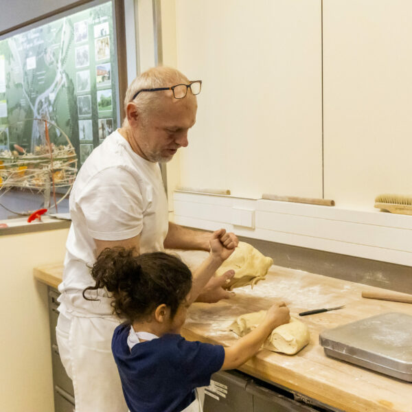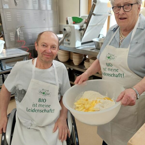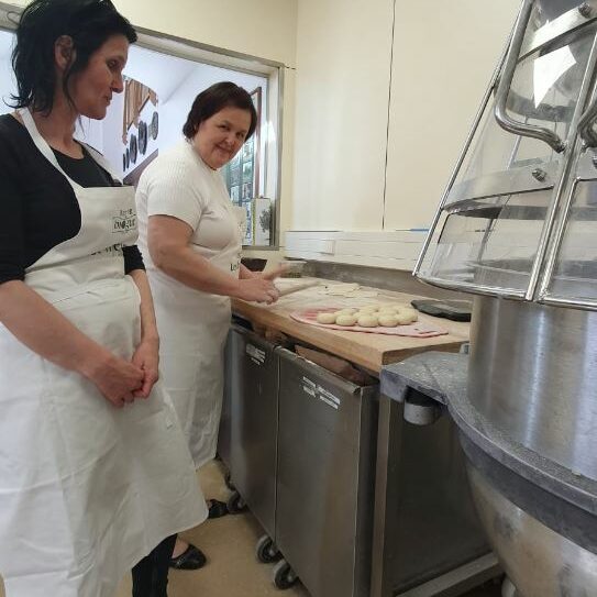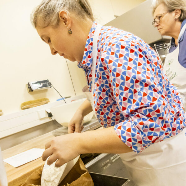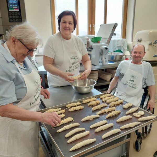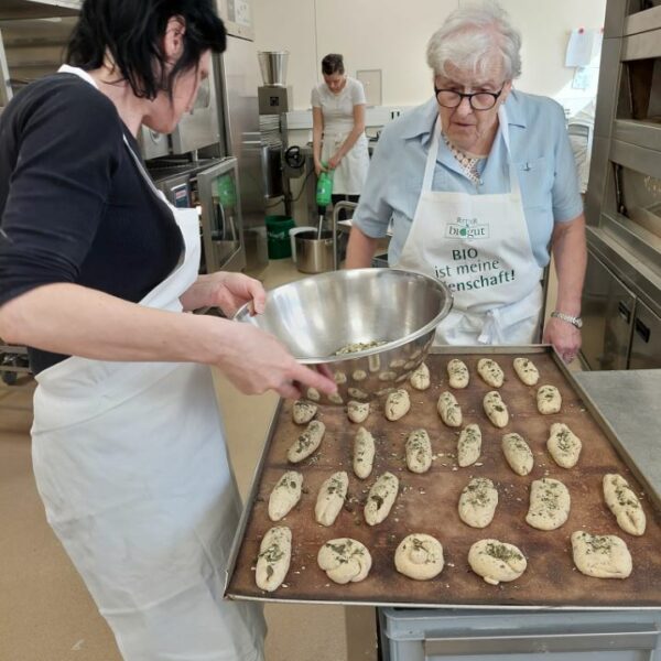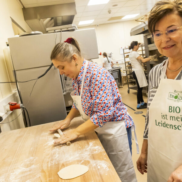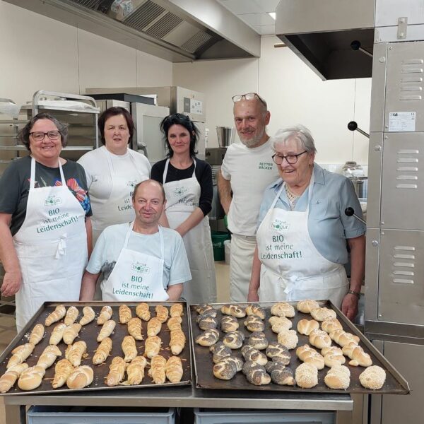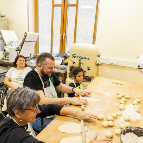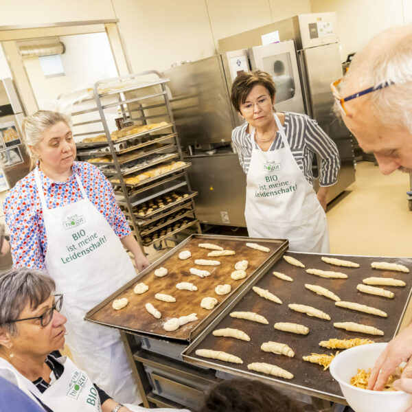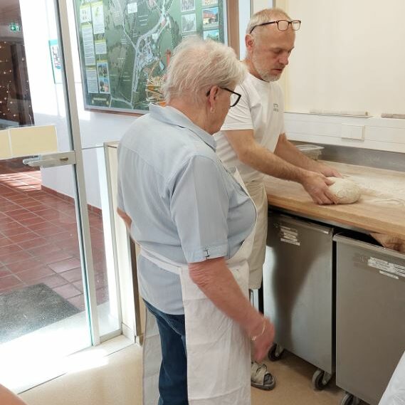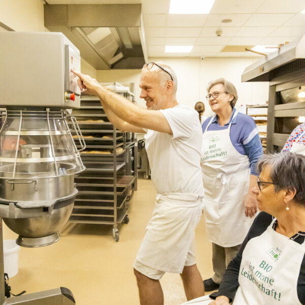 Bäckermeister Gerhard hat unseren interessierten Teilnehmern, inklusive unserem Obmann Stefan Pflanzl, den kompletten Ablauf einer Bio-Bäckerei erklärt und die Teilnehmer dabei unterstützt, ihr eigenes Gebäck zu backen.